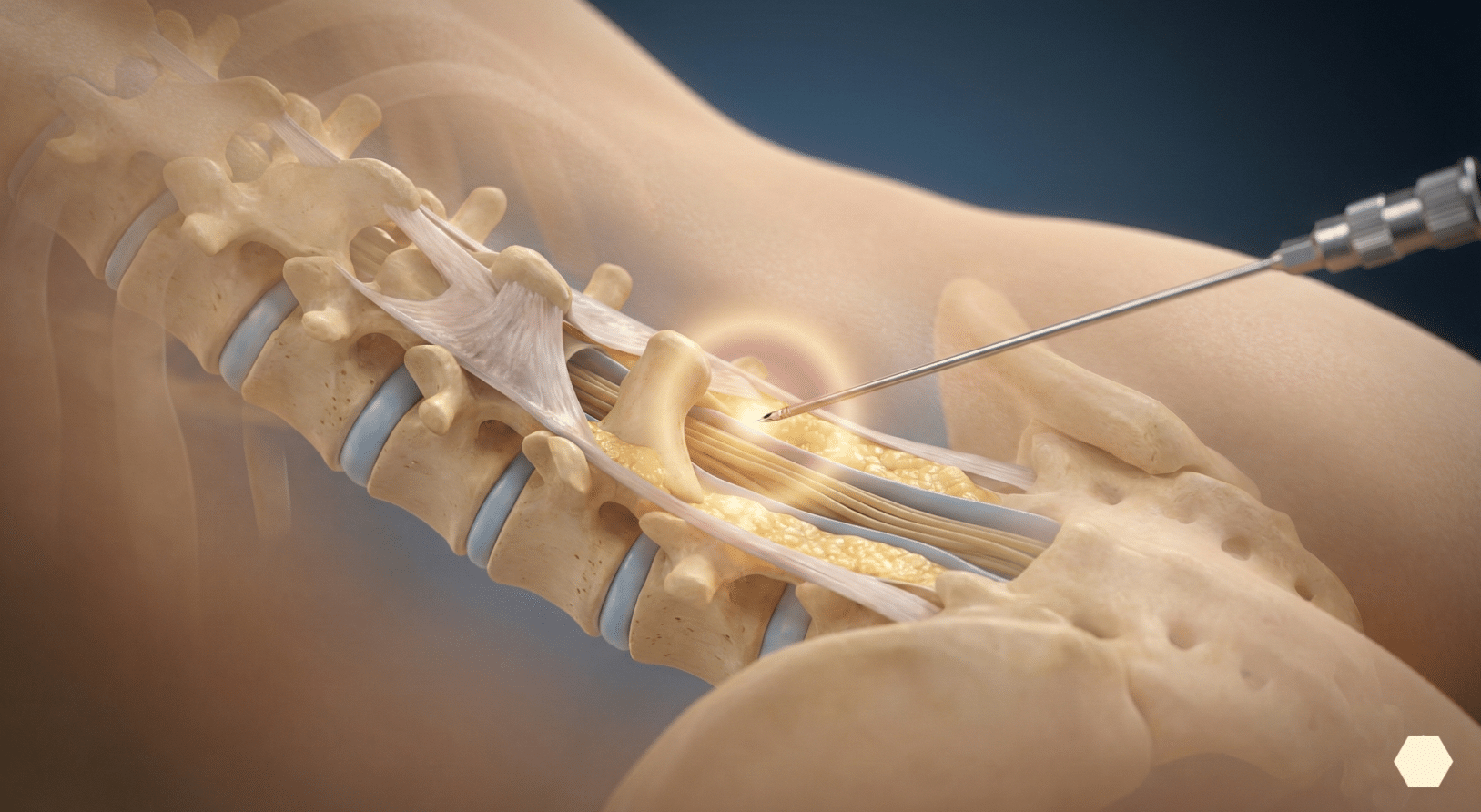 La técnica consiste en depositar un medicamento antiinflamatorio y regenerativo exactamente en el espacio epidural (el área que rodea los nervios de la médula espinal).